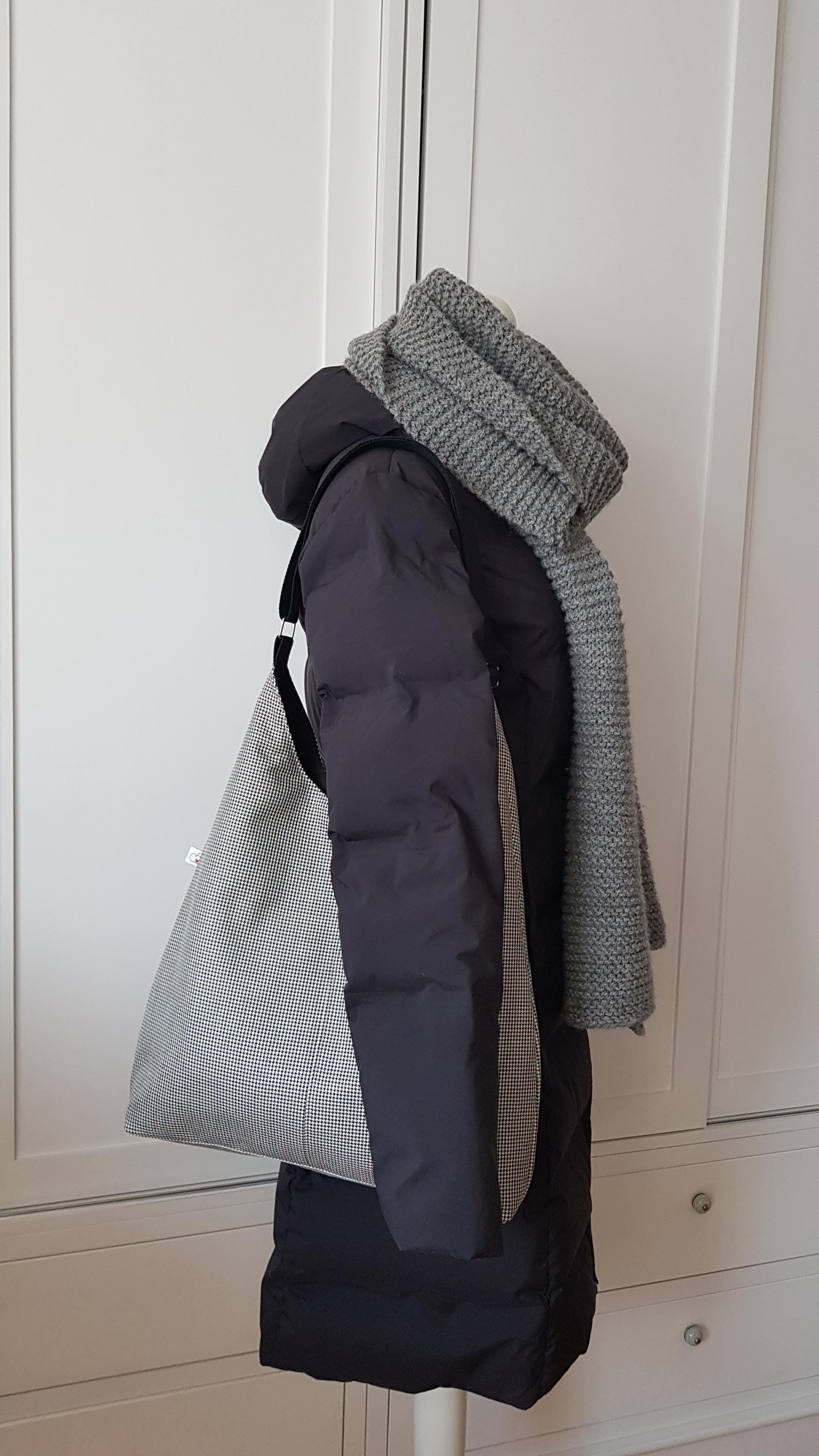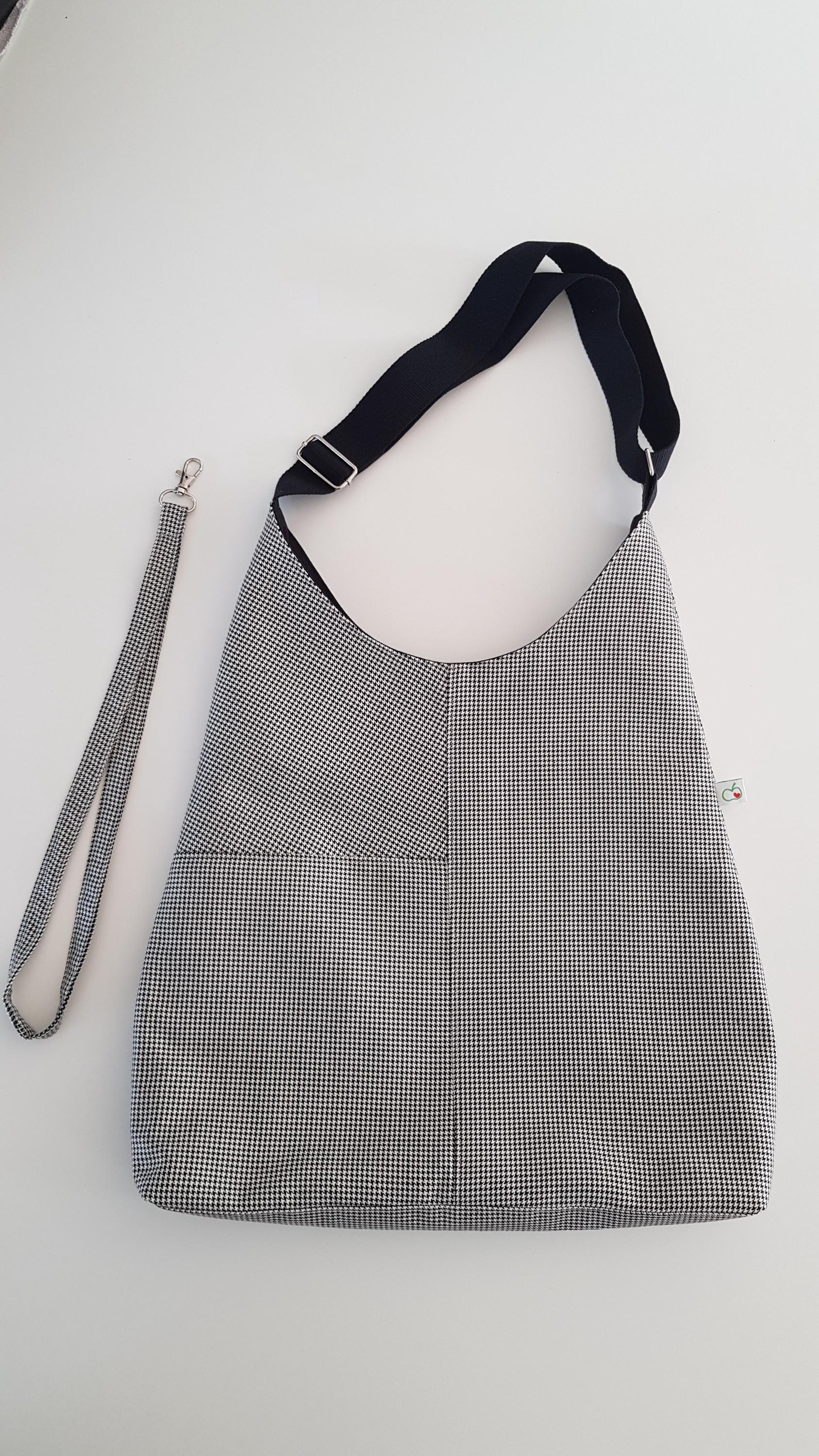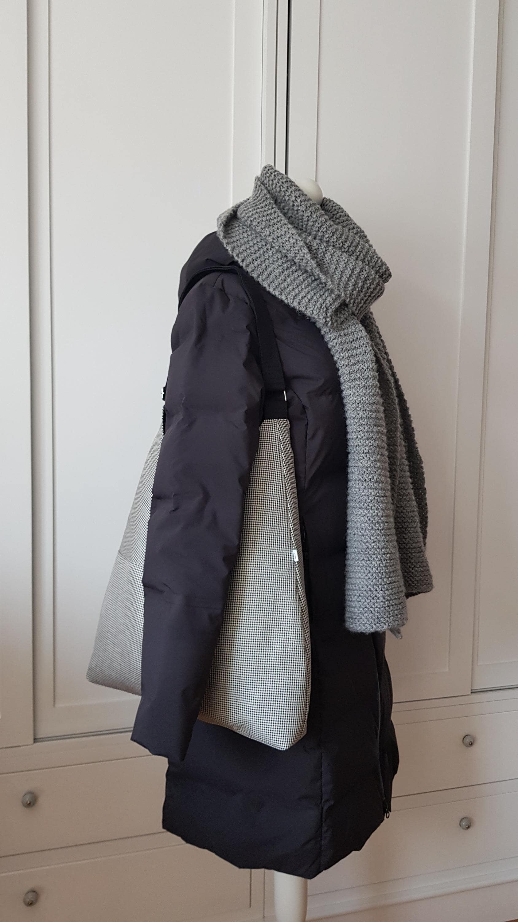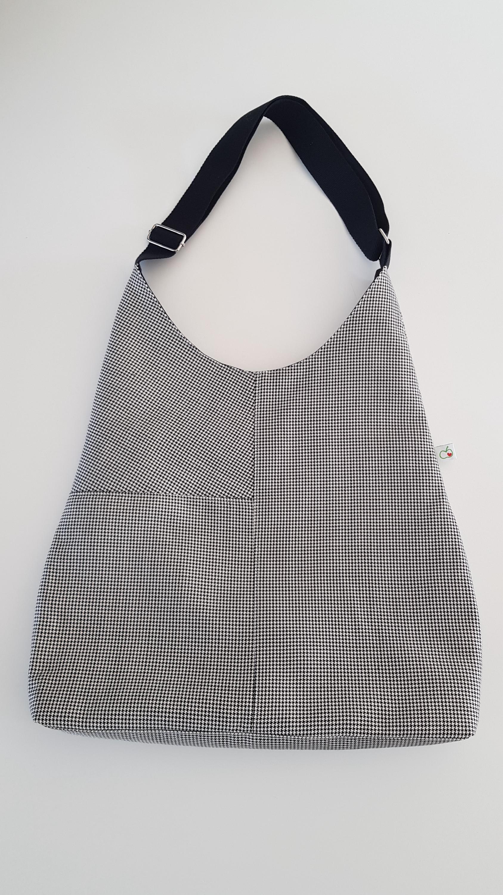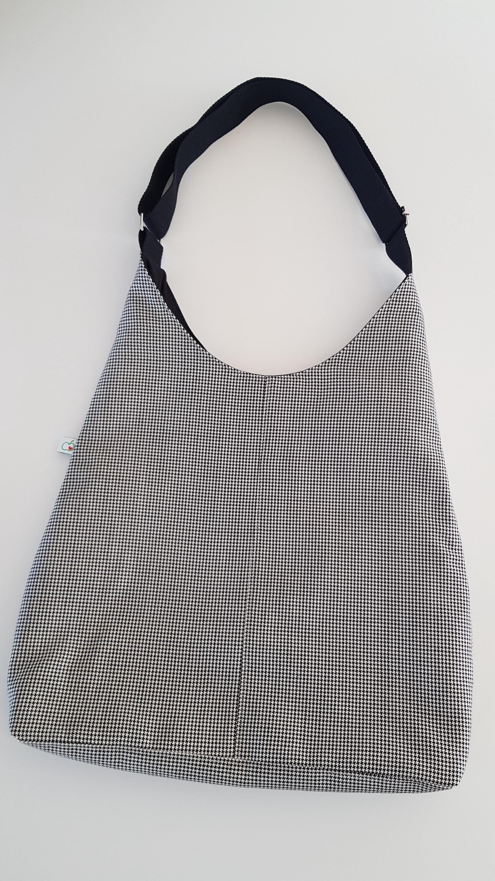 Are you looking for an elegant new bag that not only looks great but also scores points for sustainability? Then this unique shoulder bag made of high-quality wool fabric might be just right for you. The special feature: it's sewn from a discarded men's jacket with a classic houndstooth pattern and has two different sides. For the outer sides of the bag, the wool fabric was cut into rectangles of varying sizes and then assembled into a graphic pattern. The houndstooth pattern also meets at different angles, giving this feminine bag an extraordinary touch.