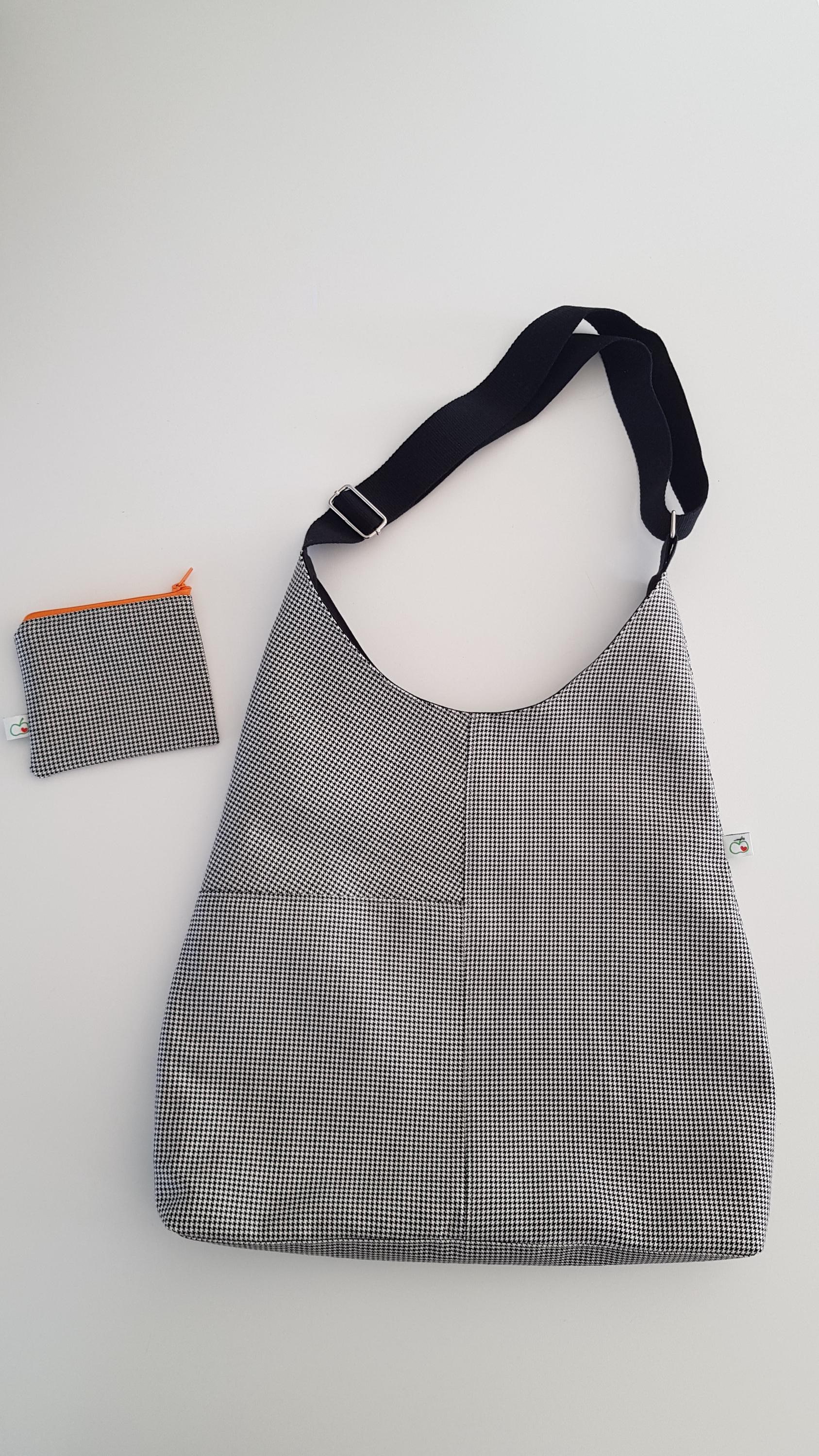This versatile little bag is sewn from a discarded men's jacket made of high-quality wool and black organic cotton. It's the perfect small gift for anyone who cares about sustainability. Or it makes a practical addition to the hobo bag made from the same fabric combination.