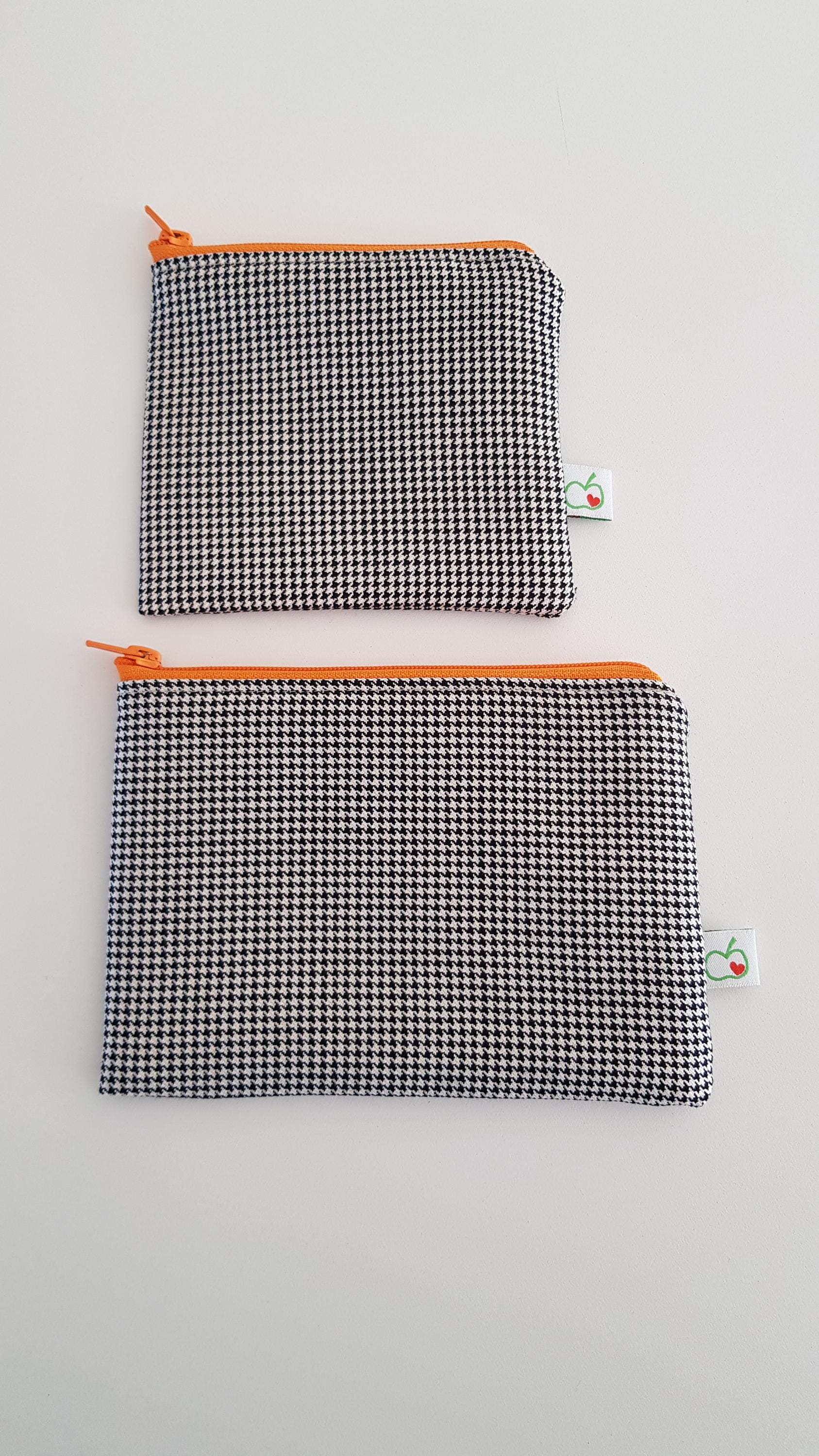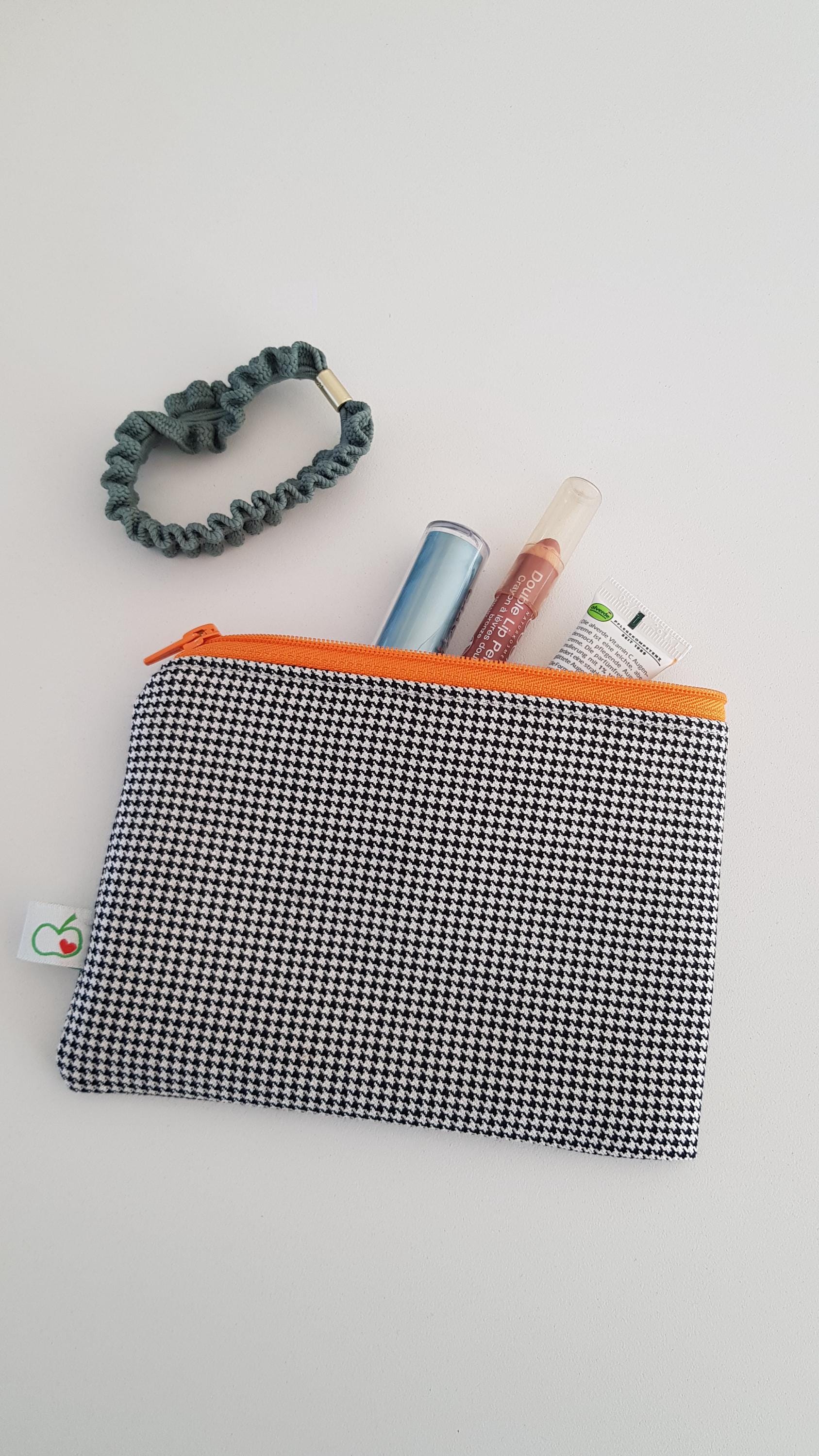 A pretty, versatile bag with a houndstooth pattern – keeps things organized in your handbag or backpack. Whether it's lipstick, change, charging cables, or keys – anything you need to access quickly fits in this small zippered bag. And with its classic houndstooth pattern and orange zipper, it looks quite stylish too.