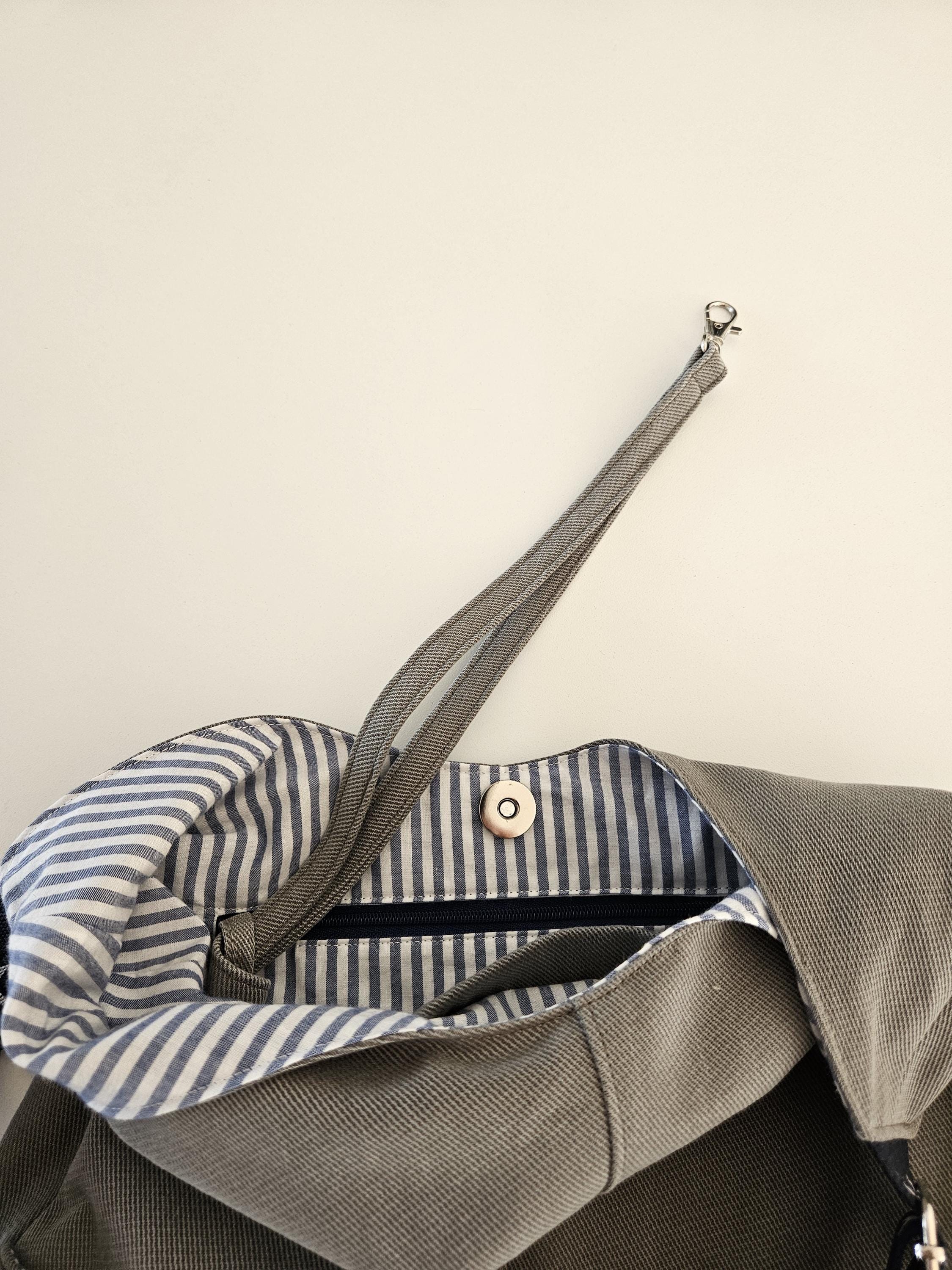 If sustainability is important to you and you like to know how and where the things you buy are made, then this special shoulder bag could be just right for you. All the fabrics used for this bag had a previous life – the light green outer fabric was once a pair of men's trousers, and the striped organic cotton fabric was a pillowcase. Naturally, both fabrics were carefully washed and inspected for any defects before being used. The bag was designed and sewn by hand in a one-woman workshop in Cologne.